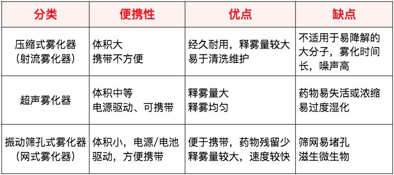 三种雾化器挑花眼?一张表格帮你理清优缺点
