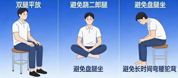 坐姿时尽量让双脚平放在地面上,保持腿部自然舒展,避免跷二郎腿、盘腿坐,也不要长时间弯腰驼背,这些不良姿势会直接压迫下肢静脉,影响血液正常回流。
