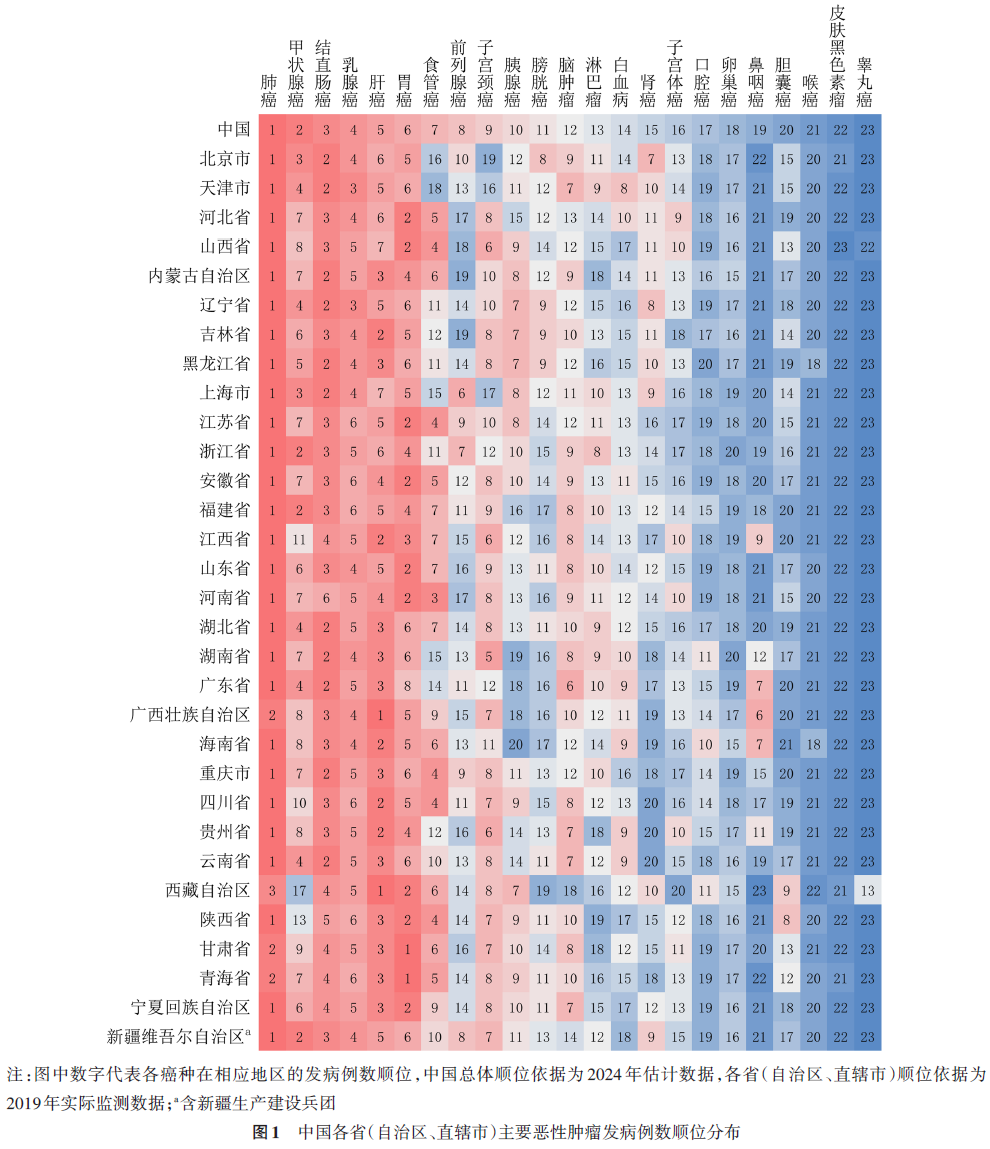 并且,肺癌在中国27个省(自治区、直辖市)中居恶性肿瘤发病首位,在中国26个省(自治区、直辖市)中居恶性肿瘤死亡首位。